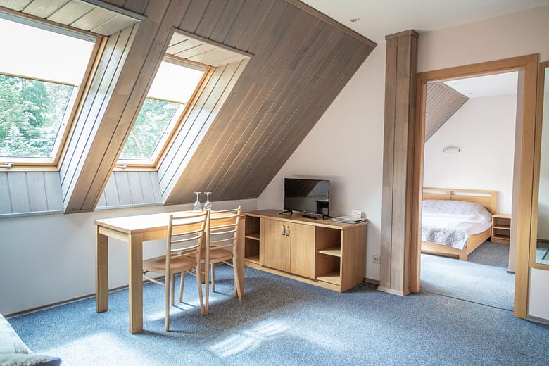 Puikiai tinka poroms ar draugams – mūsų dviviečiai kambariai siūlo jaukią poilsio erdvę su patogiomis lovomis ir žavingomis detalėmis. Mėgaukitės ramiu nakties miegu ir pabuskite apsupti Neringos grožio.